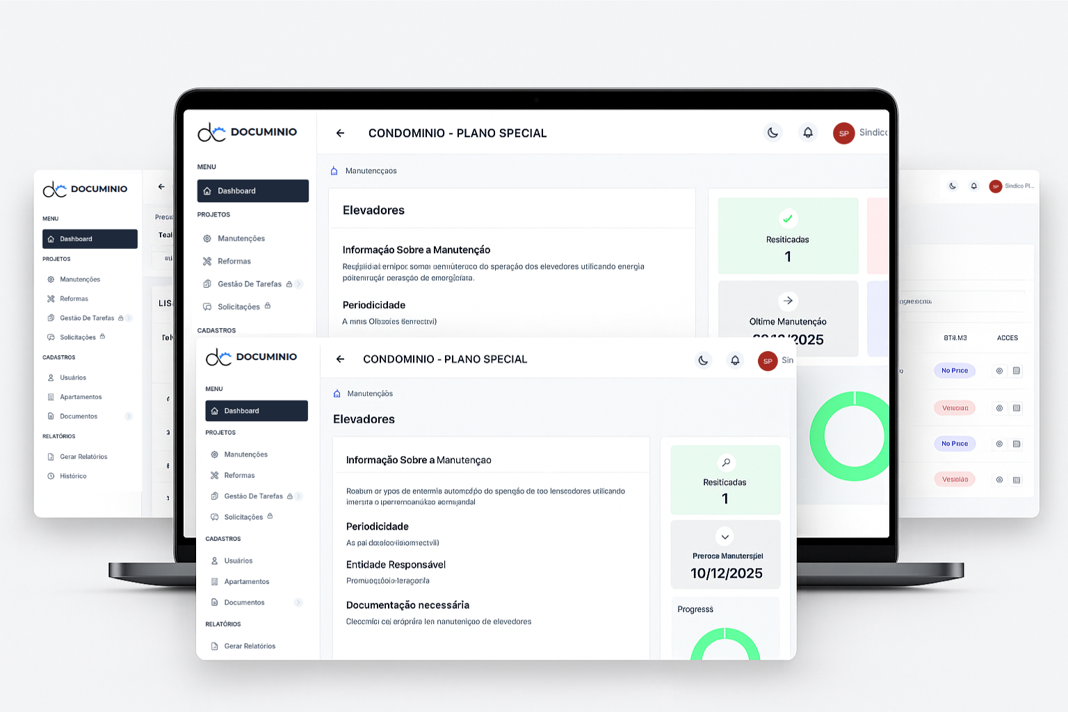 O Documinio é uma plataforma completa que centraliza todas as operações do seu condomínio. Com forte ênfase em manutenções, reformas e segurança, oferecemos as ferramentas necessárias para uma gestão profissional e eficiente.